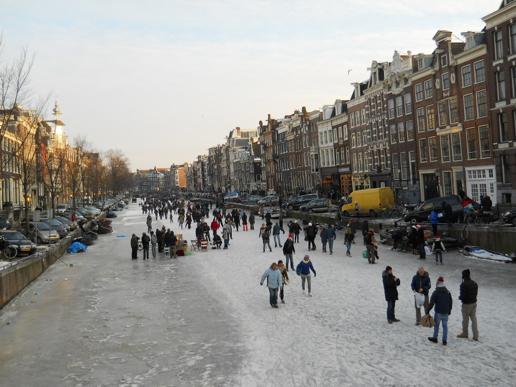 People of all ages, shapes and sizes made their way onto the frozen canals and whether skiing or walking took the ice in their stride.